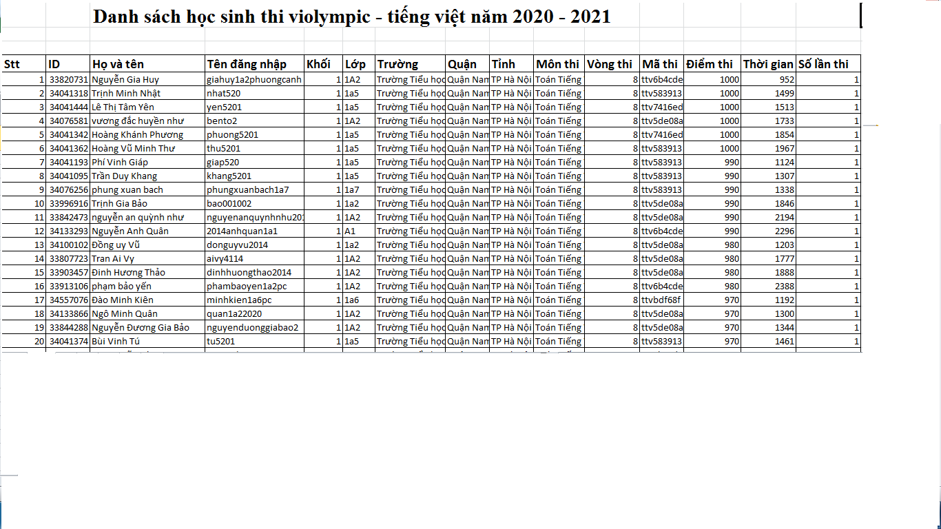 THÔNG TIN HỌC SINH THI VIOLYMPIC TIẾNG ANH – VIOLYMPIC TIẾNG VIỆT