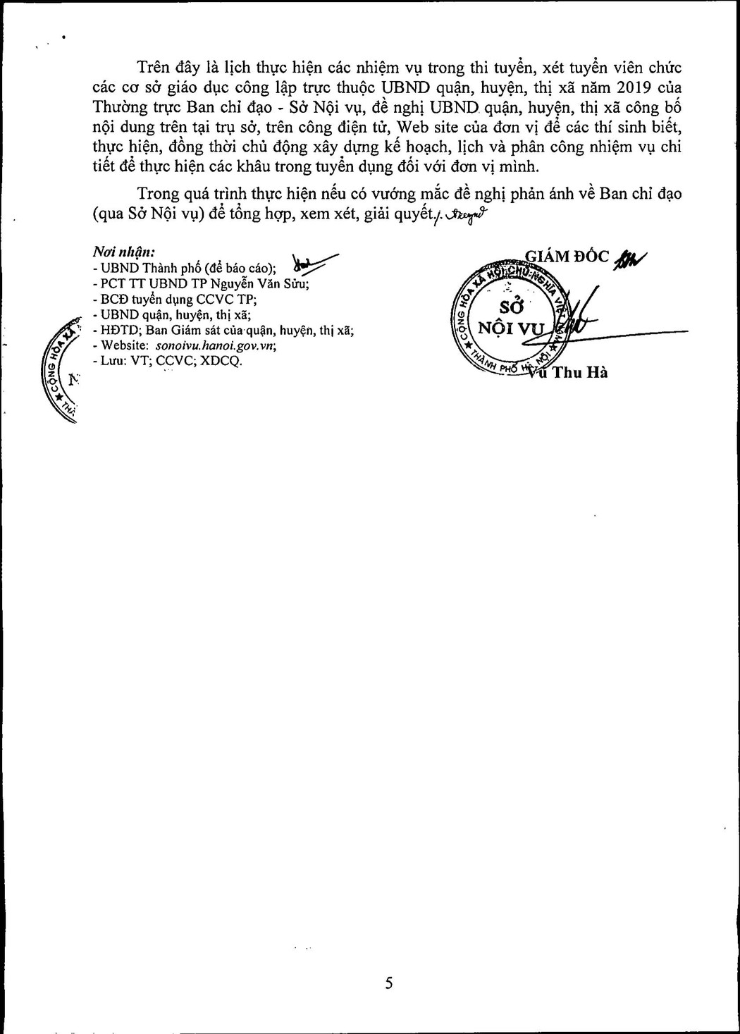 UBND THÀNH PHỐ HÀ NỘI SỞ NỘI VỤ ———– Số: 2239/TB-SNV |