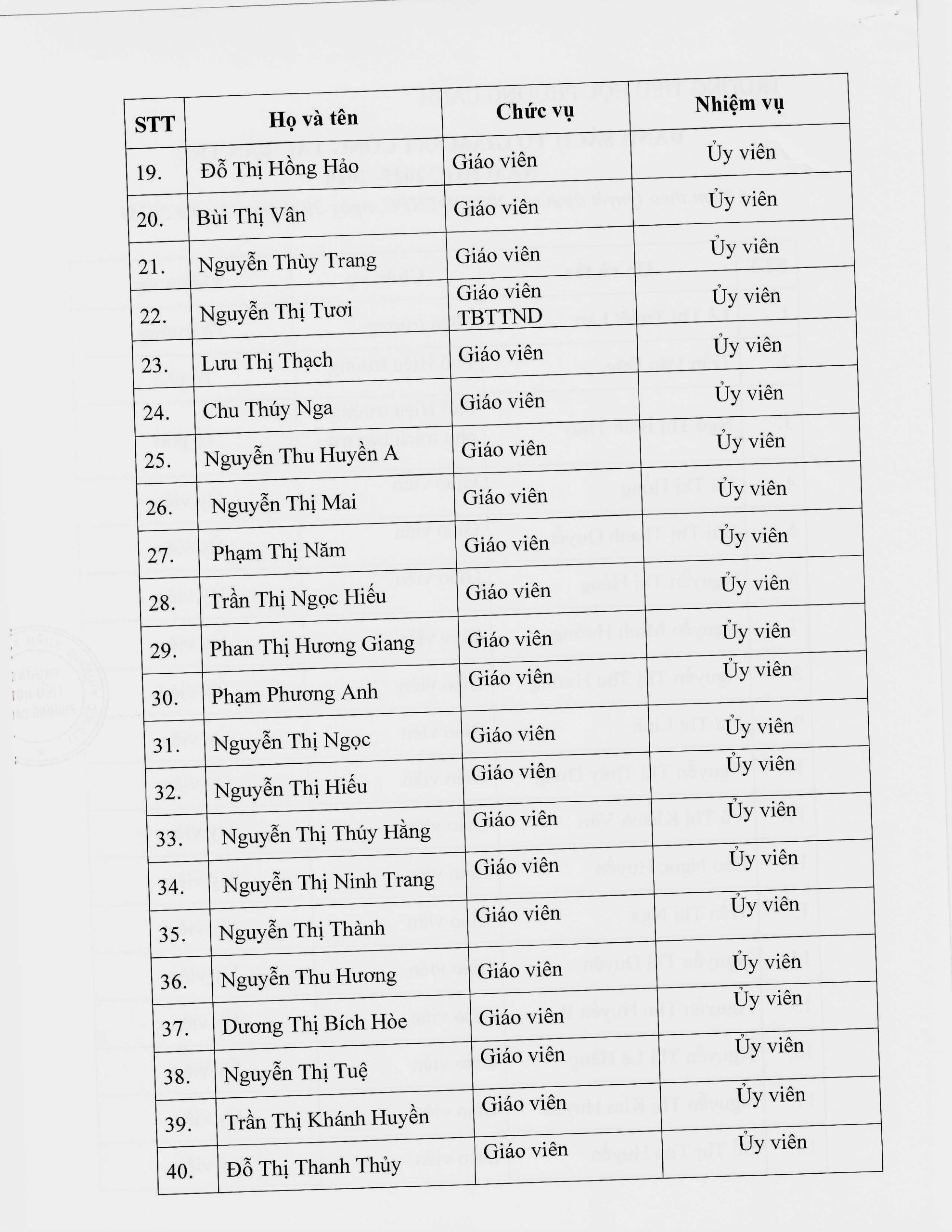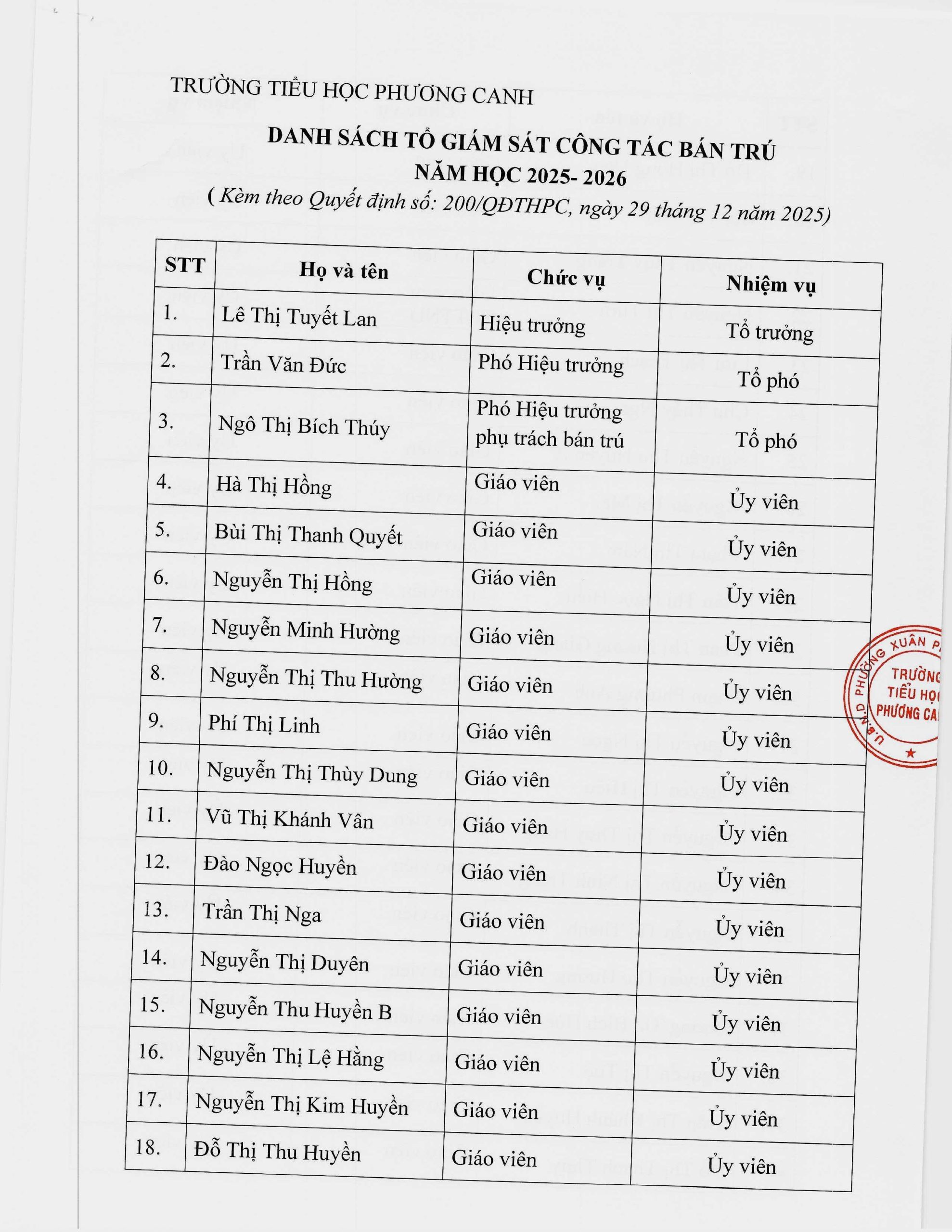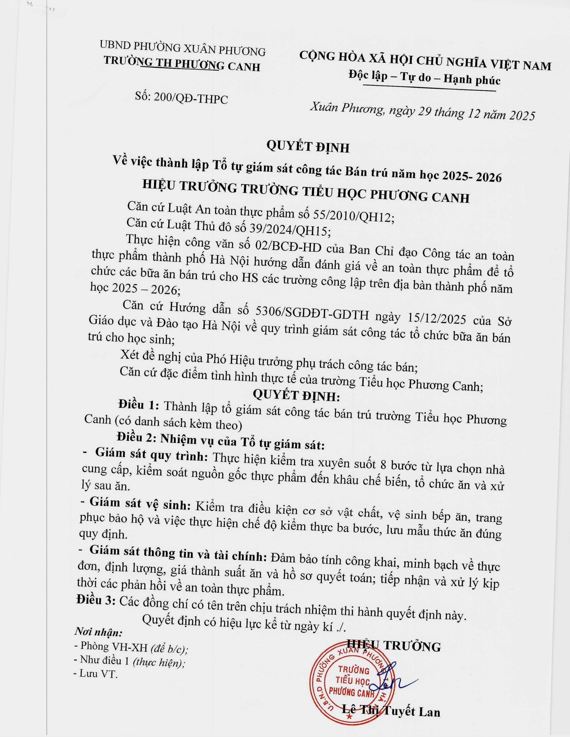 Quyết định thành lập tổ tự giám sát công tác bán trú năm học 2025 – 2026