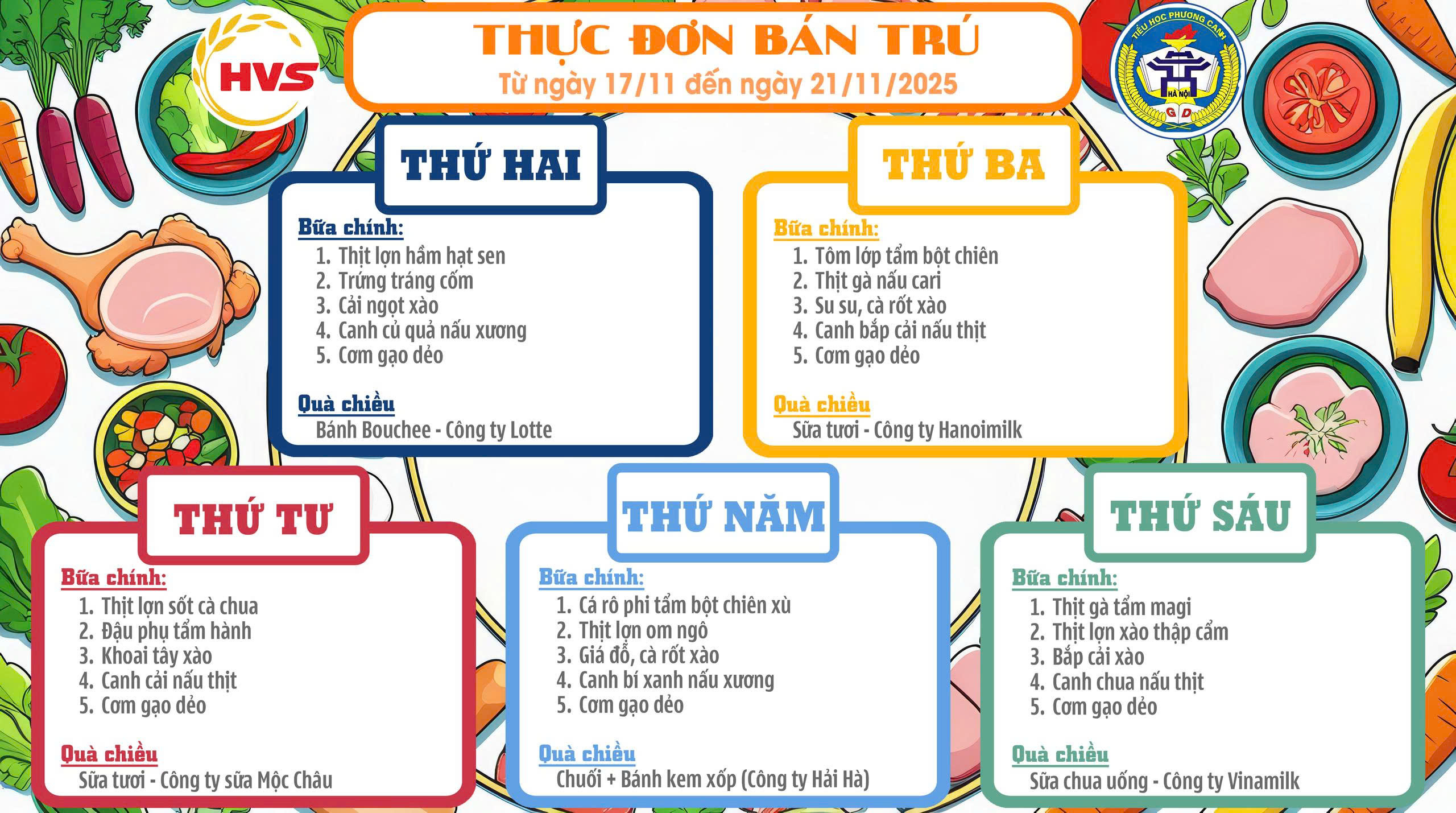 Thực đơn bán trú ngày 17/11 đến 21/11/2025