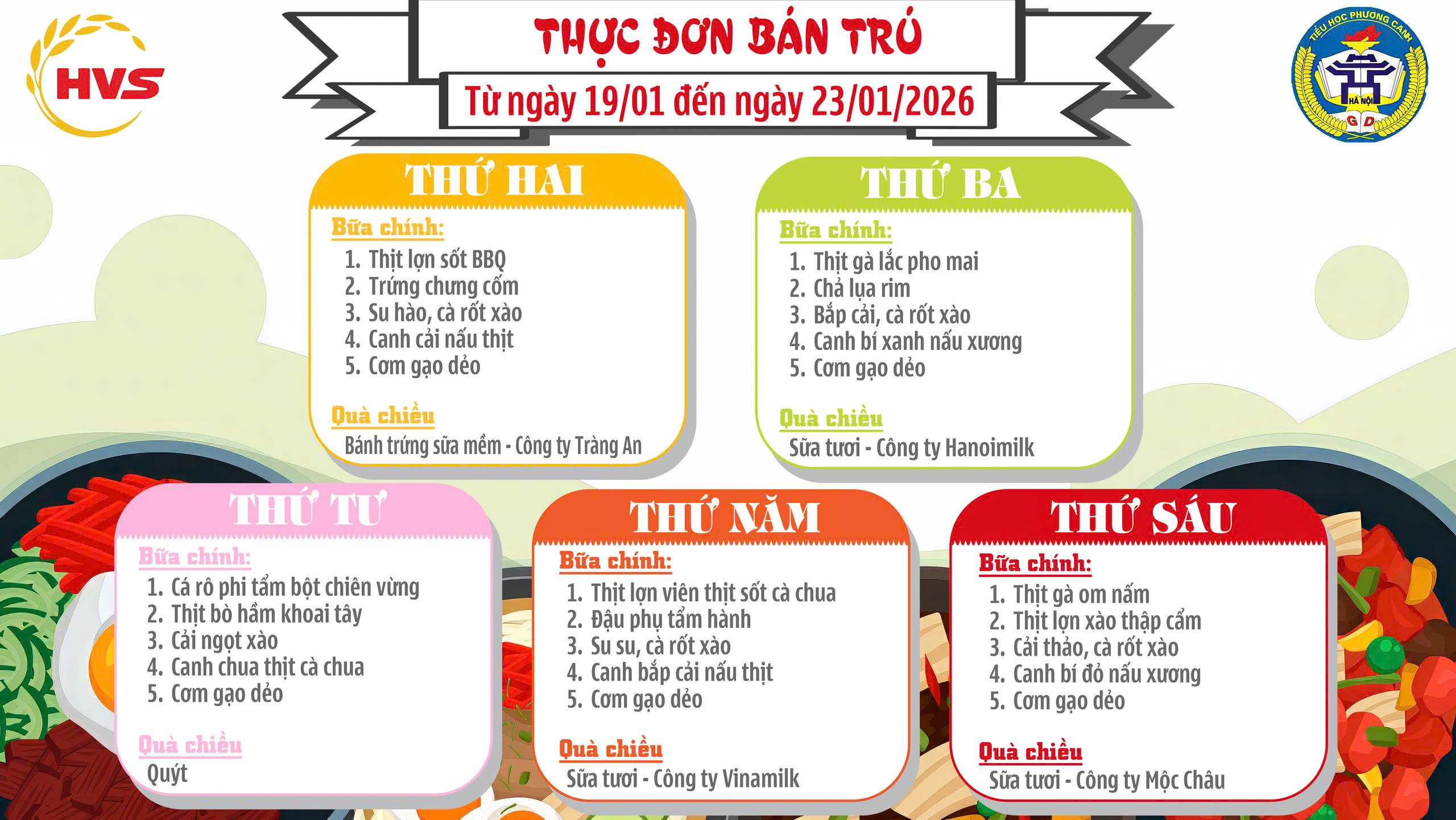 Thực đơn bán trú ngày 19/1 đến 23/1/2026